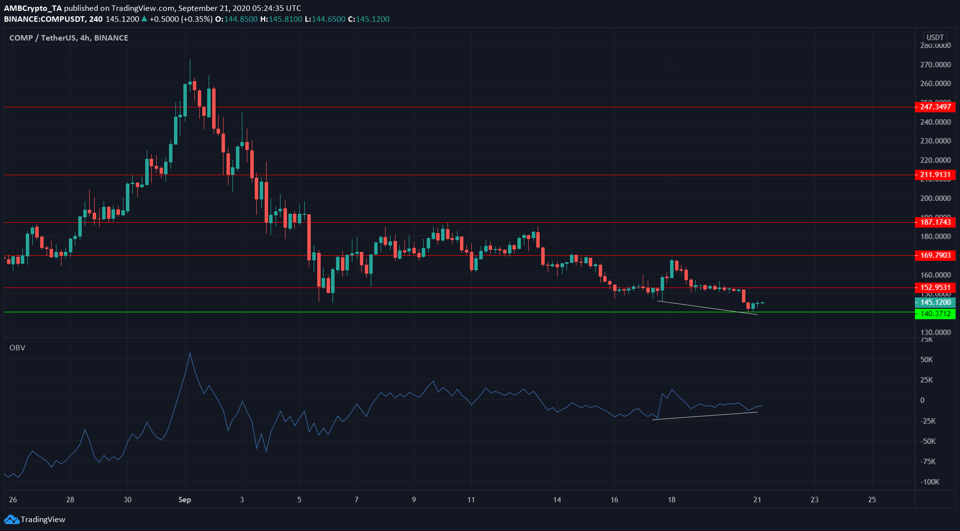 Fiyat daha düşük seviyeler oluştururken OBV de yükseldi. Bu, yakında bir tersine dönüşü tahmin edebilir ve COMP’un kısa vadeli bir ralli görmesi muhtemeldir.