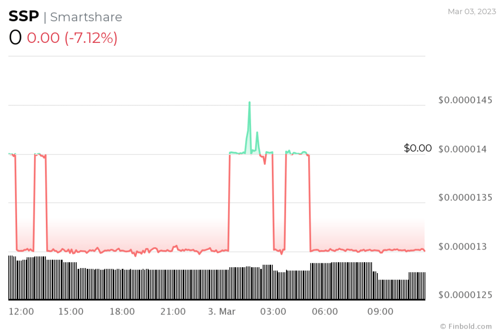 SSP ayrıca, ağda yalnızca 36.779 yatırımcı olduğundan, çok zayıf bir benimseme puanına sahip. Aynı zamanda, 3 Mart’ta alınan verilere göre, piyasa performansı zayıf olarak derecelendirildi. Fiyat açısından, son günlerdeki çift haneli düşüşlerin ardından toparlanma sürecinde.