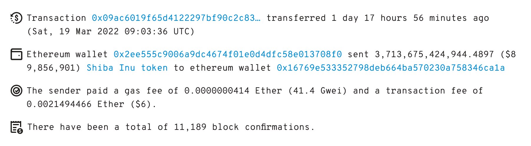 2021 yılının özellikle ikinci yarısına damga vuran fenomen token Shiba Inu (SHIB) dev Ethereum balinalarının yatırımlarını almaya devam ediyor. Alım öncesi en büyük 216. balina olan adres, 3.7 trilyon adet SHIB token’ını tek işlemde aldı ve cüzdanına kazandırdı.