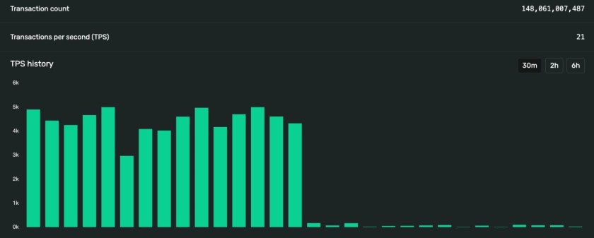 Solana ağında saniyede yapılan işlem sayısı sıfır noktasına yaklaştı. Sorunun nedeni henüz belirlenemezken doğrulayıcılar, eski sürüme geçiş yapmaya başladı.